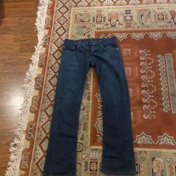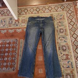Ett par ljusblå jeans med vida ben. Vet inte storlek men runt 33/30