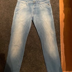 Välj bland snygga och välsittande jeans för herr i olika passformer och tvättar från en mängd olika varumärken. Vad sägs om Levi’s, Dr. Denim, Nudie och G-Star Raw? I vårt second hand-utbud hittar du enkelt jeans i din storlek till ett bra pris, utan att ens behöva lämna soffan. Bra för både plånboken och miljön!