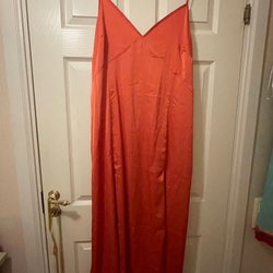 Lite ovanlig modell på kjol i guldglittrigt tyg, polyamid/metallisk fiber och elastan. Resår i midjan och halvvägs ner till fållen. Midilängd, stl M.