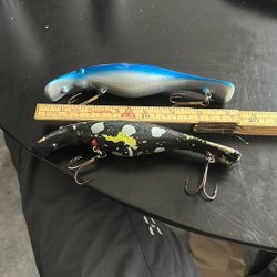 Två fiskedrag i olika färger