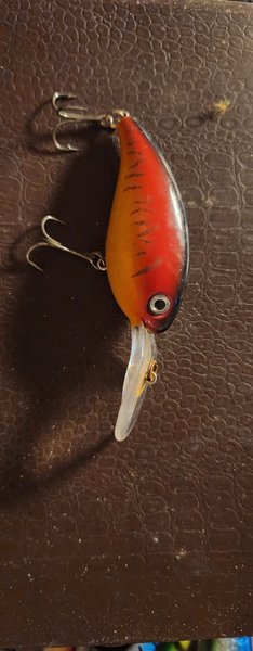Detta fiskedrag har en röd och orange design med en genomskinlig sked. Utrustad med två krokar för effektiv fiske. Passar bra för olika typer av fiske.
