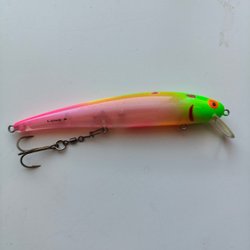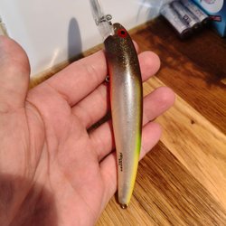 Fiskedraget är av modellen Shadow Rap II och har en slank design. Det är utrustat med tre krokar för effektiv fiske. Färgen är en kombination av ljus och mörk nyans, vilket kan attrahera olika typer av fisk. Perfekt för både nybörjare och erfarna fiskare.