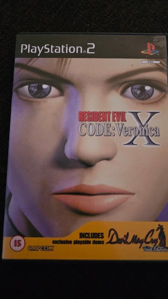 Resident Evil Code: Veronica X till PlayStation 2. Spelet inkluderar en exklusiv spelbar demo av Devil May Cry Trial Edition.