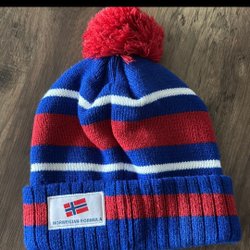 Vit, blå, röd mössa