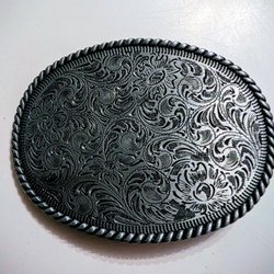 Ett dekorativt bältesspänne med en oval form. Spännet har en detaljerad bild av en historisk scen med figurer i en båt och en amerikansk flagga med stjärnor och ränder. Designen är gjord i en antik silverfinish med färgade detaljer på flaggan.