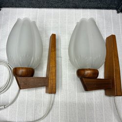 Två vackra fönsterlampor med mässingsfästen och bedårande glaskupor.