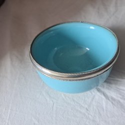 En gullig dockservis i blåvitt porslin! Fyra koppar varav tre har fat. En mjölkkanna och en kaffekanna med lock. Allt är fint. Höjd kaffekanna 11 cm, höjd kopp 4 cm.