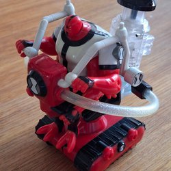 RP6 Robot System med kretskort och tillbehör. Systemet inkluderar en robotplattform med banddrift och ett huvudkretskort med diverse komponenter. En USB-adapter och en USB-kabel medföljer. Ytterligare ett kretskort med komponenter i förpackning ingår.