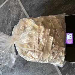 Ett paket med röda Lego-bitar. Perfekt för att utöka din Lego-samling eller för att bygga egna kreativa konstruktioner. Vikten är 524 gram. Ej tvättade, enbart sorterade.