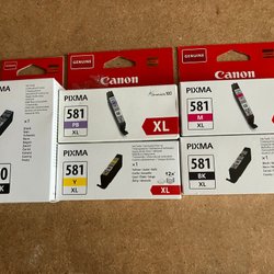 Box med diverse skrivarpatroner