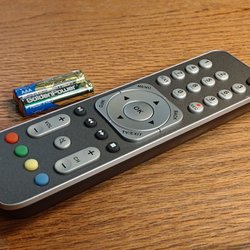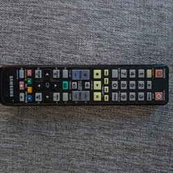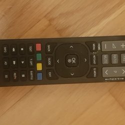 En fjärrkontroll för diverse elektroniska apparater. Den har knappar för MEDIA, TV, WEB, APP, VOL-, VOL+, HOME, RETURN, CH+, CH-, MENU och MOUSE. Den har också en numerisk tangentbord.