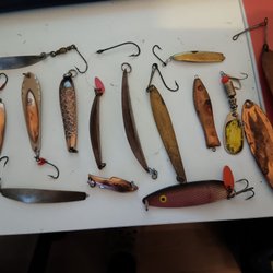 Ett urval av fiskekrokar i olika storlekar och former, för olika fiskeändamål. Krokarna är fästa på en skumgummiplatta för enkel förvaring. Passar både nybörjare och erfarna fiskare.