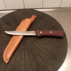 Kniven har rost som ni ser på bilden, men den kan putsas..