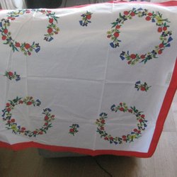 En vacker vit virkad duk med blommönster. Perfekt för att dekorera bordet. 130 x 178 cm. Finns ingen kvalitets/tvättlapp. Vit