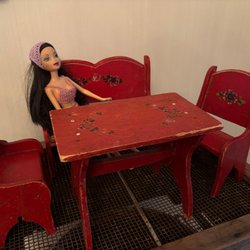 En fin äldre linneduk i beige botten, samt ränder i olika färger som grönt, rost, lite gult lite brunt. Mått 150x 250 cm. Har granskat duken och har inte hittat nån fläck eller så.