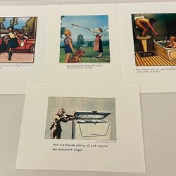 Bordstabletter/tallriksunderlägg i miljövänlig plast från K. Hjelm Förlag med motiv av Astrid Lindgren och Jan Lööf (”Emil och Ida” resp. ”Tivoli”). Två av varje. Mått 42x30 cm. Nya/oanvända. Eventuell frakt betalas av köparen.