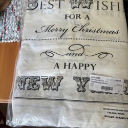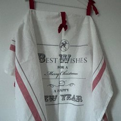 Har många olika gardiner och grytlappar.