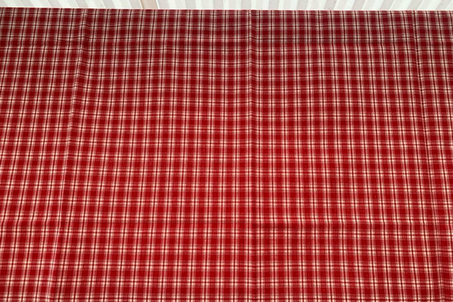 2 st gardiner i kall lite mörkare röd färg längd 156 cm och bredd 140, fållade sidor, upptill kanal 4 cm och nertill fåll 8 cm, eller hur man nu vill hänga dem. Kraftigt fint tyg och uppsydda hos möbelaffär.