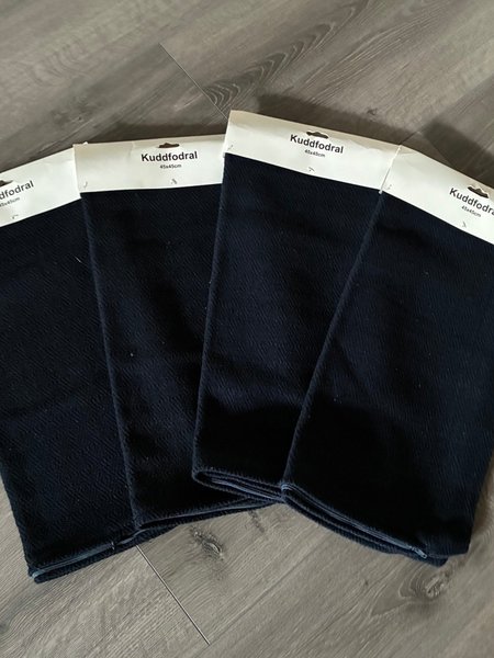 4 st Kuddfodral i storleken 45x45cm. Fodralen är marinblå och har en dragkedja.