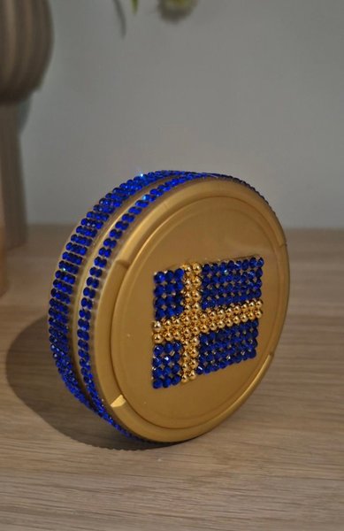 Tom snusdosa med Sverige design. Perfekt till fotbolls vm i sommar.