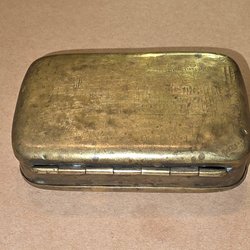 Denna låda är gjord av ett kohorn, ett träskydd och botten, läderdrag och en liten järnspik. Det visar på uppfinningsrikedomen hos människor med begränsade resurser; och följer den svenska traditionen av formföljande funktion, med användning av tillgängliga material på bästa sätt.
