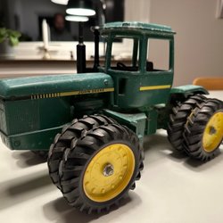 En leksakstraktor av märket Ertl John Deere. Tillverkad i USA.