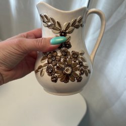 Gräddkanna i porslin med blommönster.