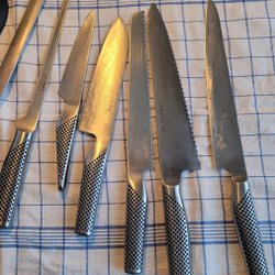 Knivställ från Global. 10 + 1 inklusive skärpstål bra skick