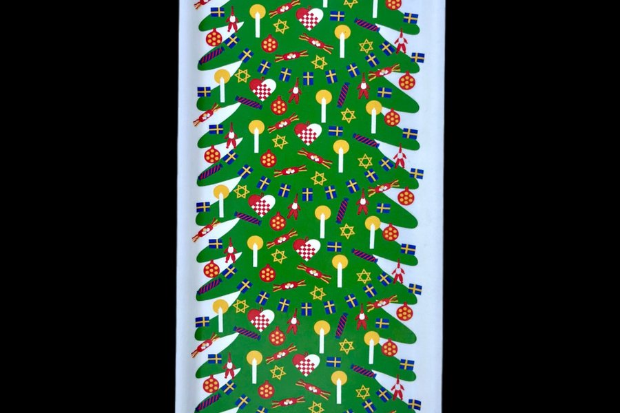 Bricka 32*15 cm i mönster Julegran (1974) av Wanja Djanaieff . Framtaget exklusivt för Vandalorum (tillverkad i Småland i björkfanér).
