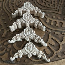 Dekorativa trä ornament för möbler eller andra projekt. Det är 8 st . Samfraktar . Betalning sker efter auktionens slut