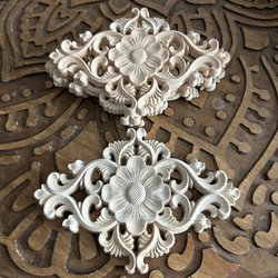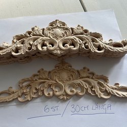 Dekorativa trä ornament. 2 st Samfraktar & betalning sker efter auktionens slut