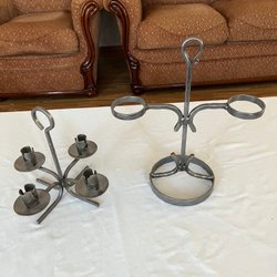 Diverse keramik, inklusive en ljusstake, en liten mugg och en burk med lock. Burken är märkt Mexico.