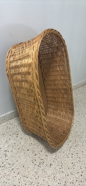 Korg i flätad pil. Passar för förvaring av exempelvis filtar, tidningar eller leksaker. Den rektangulära formen gör den enkel att placera mot en vägg eller i ett hörn.det en gammal. Tvättkorg. Eller barnsäng ca 80#120 cm