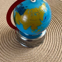 Jules Jordglob svart/guld papper H20 Ø19 på metallställning, köpt på Mio