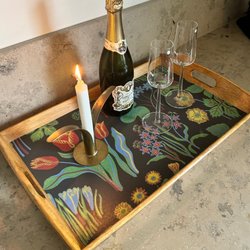 Jag har själv skapat dessa fodral med tyg från Afroart – älskar prickar och det varma skenet från ljusen.