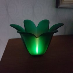 15cm i diameter, skålen för ljuset är 7,3cm i diameter, passar vanliga blockljus (bild 2, ljuset medföljer ej)
