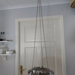 Svart ljuskrona i metall för kronljus. Kedjor för upphängning. Ca 30 cm i diameter