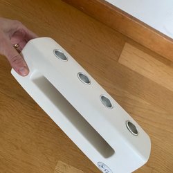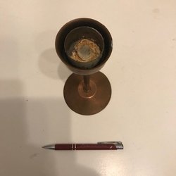 En ljusstake med en unik design. Den har en spiralformad detalj och kommer med ett ljus.