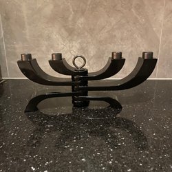 - Höjd ca 13 cm, bredd (hopfälld som på bild 1) ca 20 cm. Invändig diameter ljushållare ca 2,2 cm.