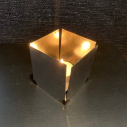 Höjd 5 cm, bredd upptill 6,5 cm. Ljusstakarna väger båda tillsammans utan emballage: ca 180 gram.