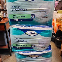 Attends Flex 8 Medium 3 oöppnade paket + 1 st lös. Totalt 85 st. Attends Flex 10 Medium 1 oöppnat paket. Totalt 22 st, + 7 st Attends Pull Ons 4 Medium och 8 st Tena proskin comfort super. Totalt antal skydd: 122 st. De lösa skydden är naturligtvis oanvända.