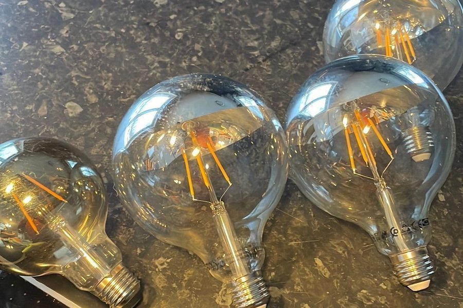 4 LED-lampor med E27-sockel. Lamporna har en dekorativ design med synliga ”glödtrådar” och en delvis speglad yta som ger ett mjukt och indirekt ljus. Perfekta för att skapa en mysig atmosfär i hemmet.
