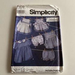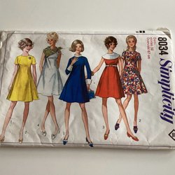 Simplicity mönster 7795 för att sy en damkollektion. Innehåller mönsterdelar för att skapa klänningar, västar och byxor i olika utföranden. Storlek 44.
