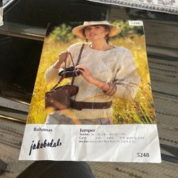 Här är ett stickmönster från Jakobsdals, Bahamas. Innehåller mönster för tröjor i olika storlekar och modeller. Storlekar från 34-36 till XL/XXL.