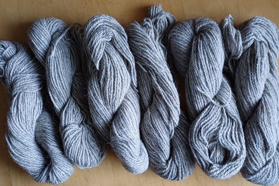 Härvor med 3- trådigt ljusgrått ullgarn