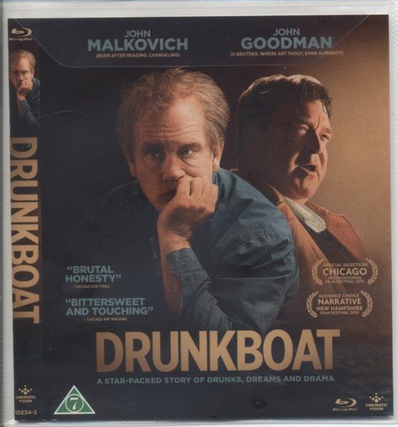 Blu-ray utgåva av filmen Drunkboat med John Malkovich och John Goodman. text: svenska norska danska finska