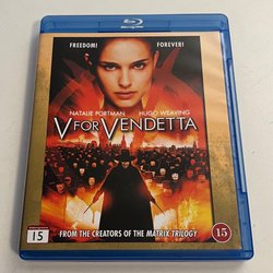 Blu-ray utgåva av filmen V for Vendetta. Med Natalie Portman och Hugo Weaving.