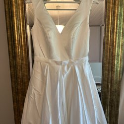 En elegant helt ny & aldrig använd eller sömnadsändrad, ärmlös brudklänning av hög kvalitet. Med fyra lager tyg i kjolen & en vacker, hjärtformad urringning. Klänningen är något längre bak vilket ger den ett litet släp.