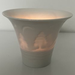 - A white Swedish designer tea light holder with Christmas theme