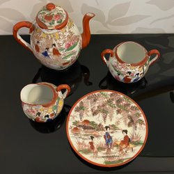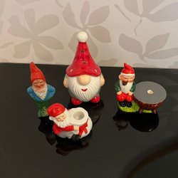 Ingefära burken har varit sprucken men hoplimmad (se bild), mycket bra skick på resterande burkar.